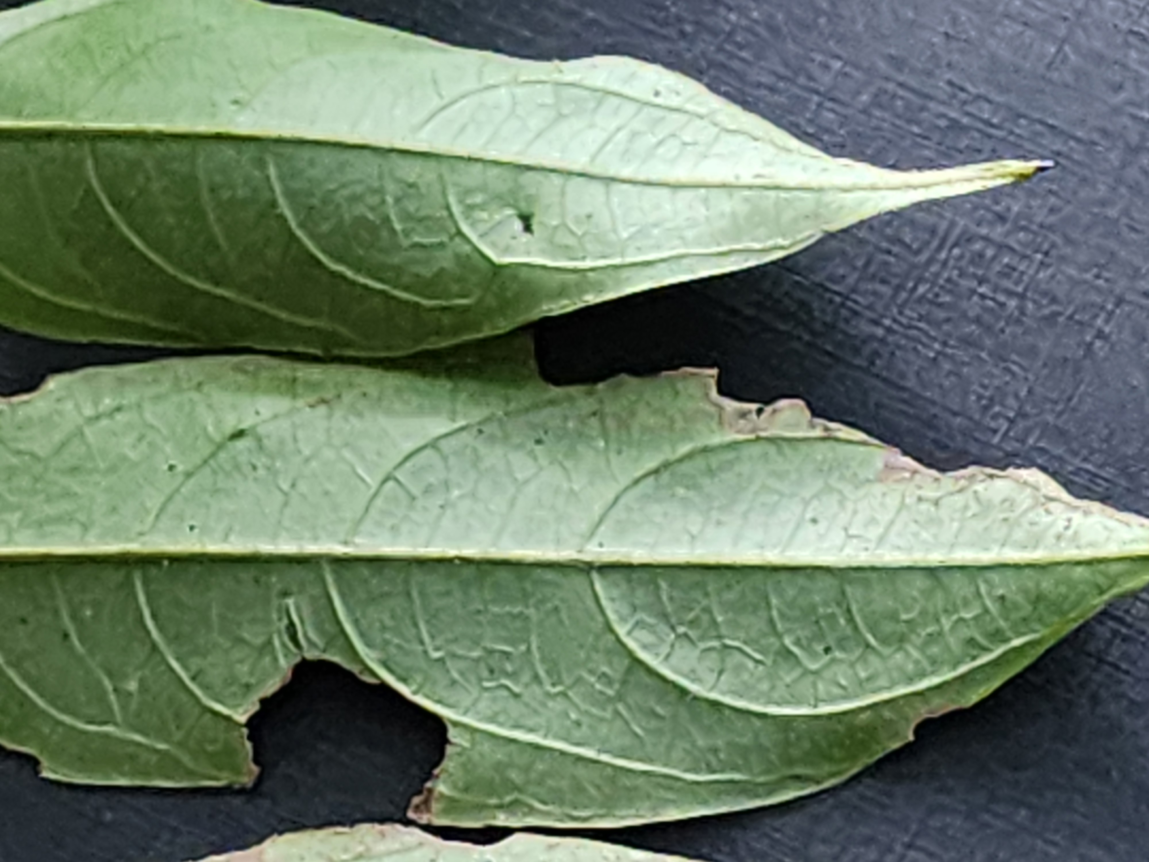 This species is commonly collected in China. The leaf margin is often finely irregular, not crisped but actually undulate parallel to the looping tertiary venation that is near it. The leaves generally flush in a characteristic fashion, elongating but remaining rolled up and narrow, and are covered with notable sericeous pubescence on the exposed lower surfaces of the midrib and principal veins. This pubescence is often deciduous, leaving the mature lower leaf surface glabrous.