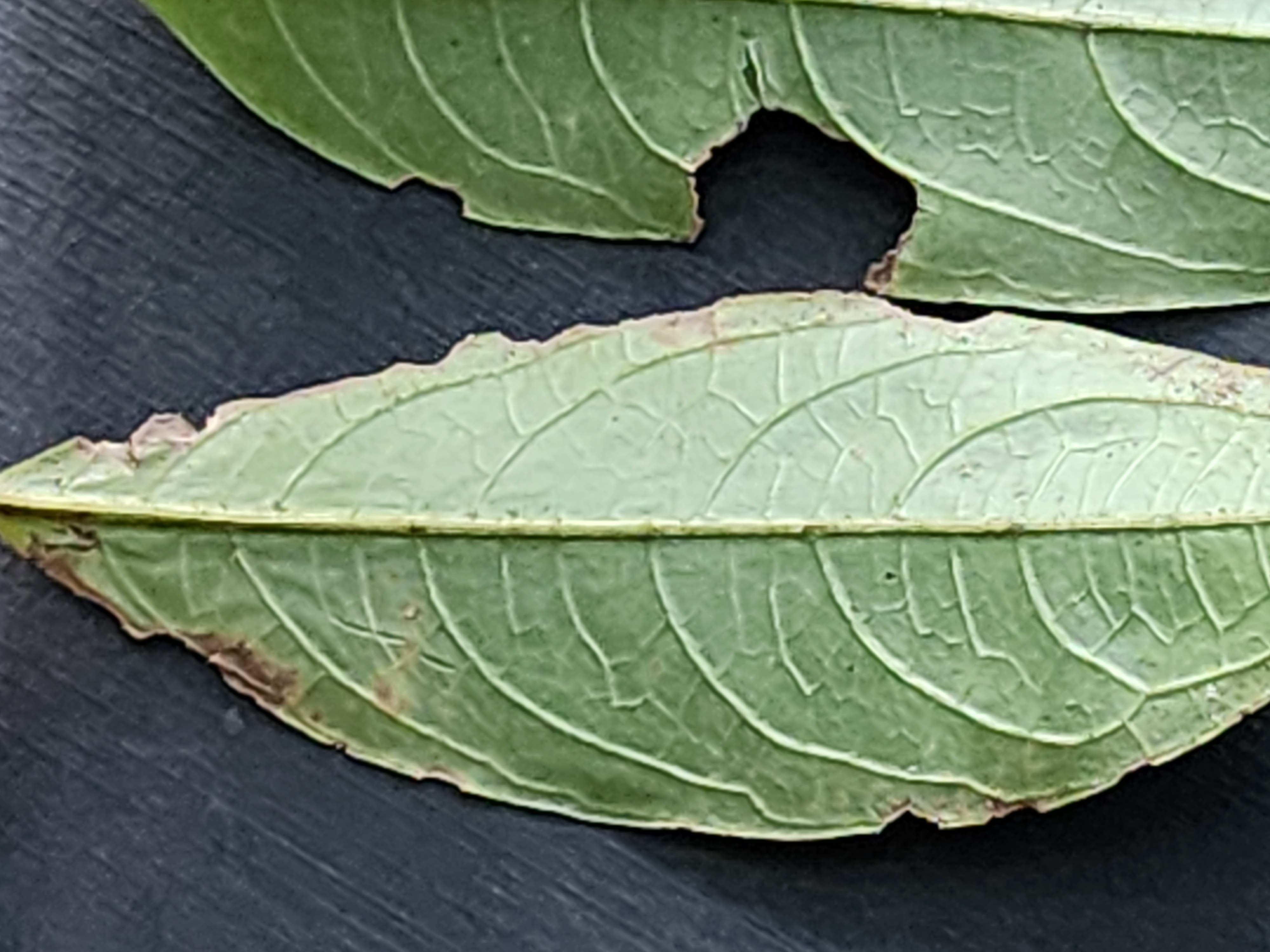 This species is commonly collected in China. The leaf margin is often finely irregular, not crisped but actually undulate parallel to the looping tertiary venation that is near it. The leaves generally flush in a characteristic fashion, elongating but remaining rolled up and narrow, and are covered with notable sericeous pubescence on the exposed lower surfaces of the midrib and principal veins. This pubescence is often deciduous, leaving the mature lower leaf surface glabrous.