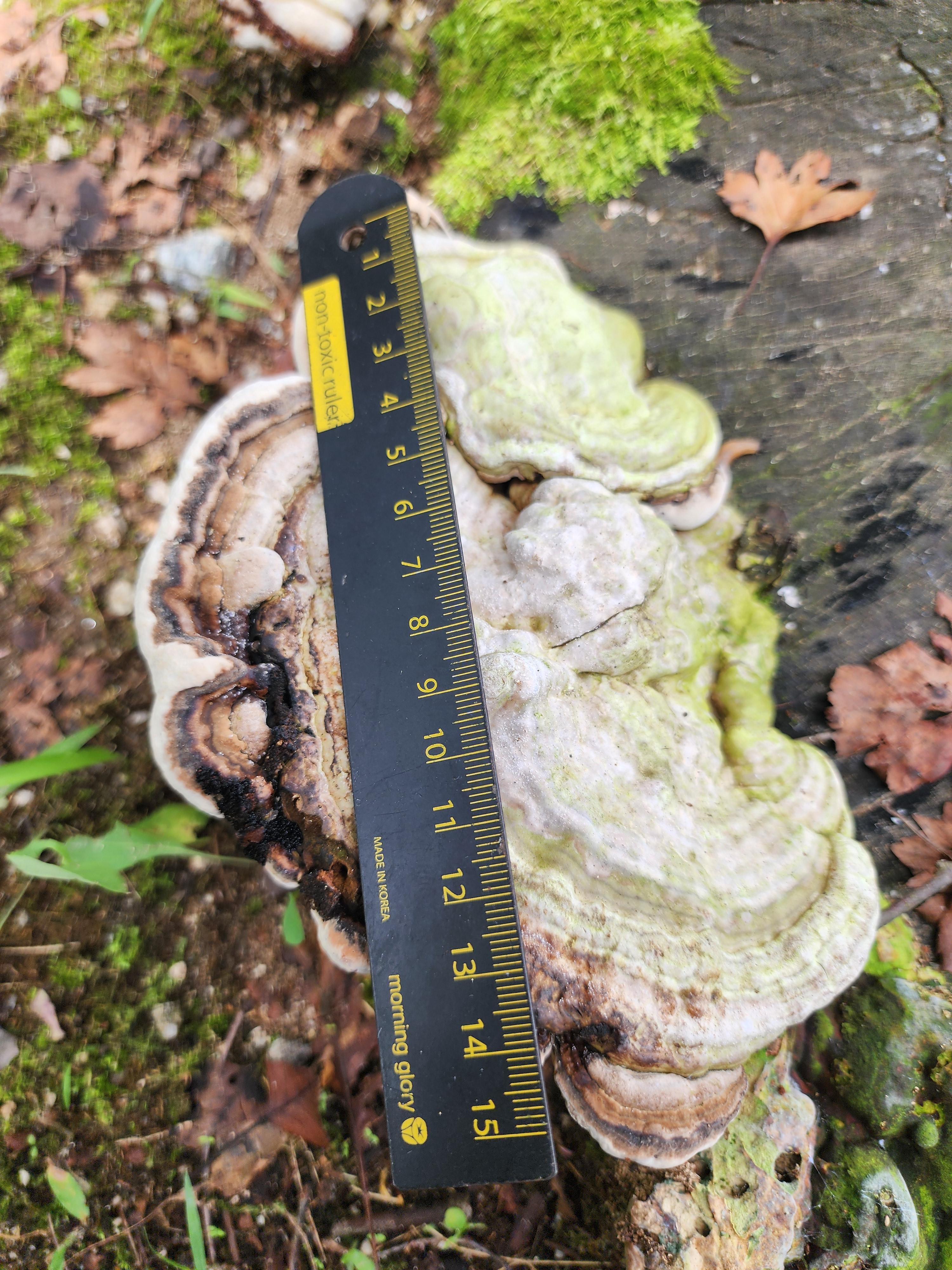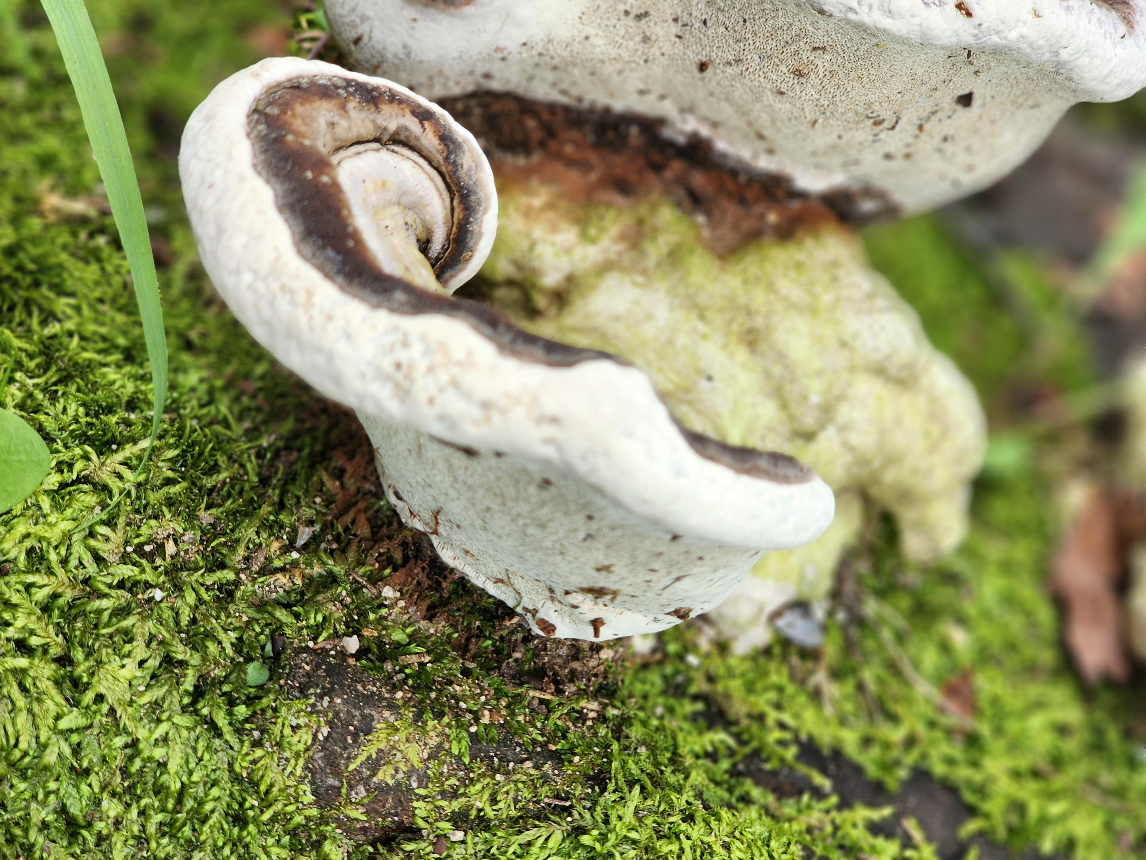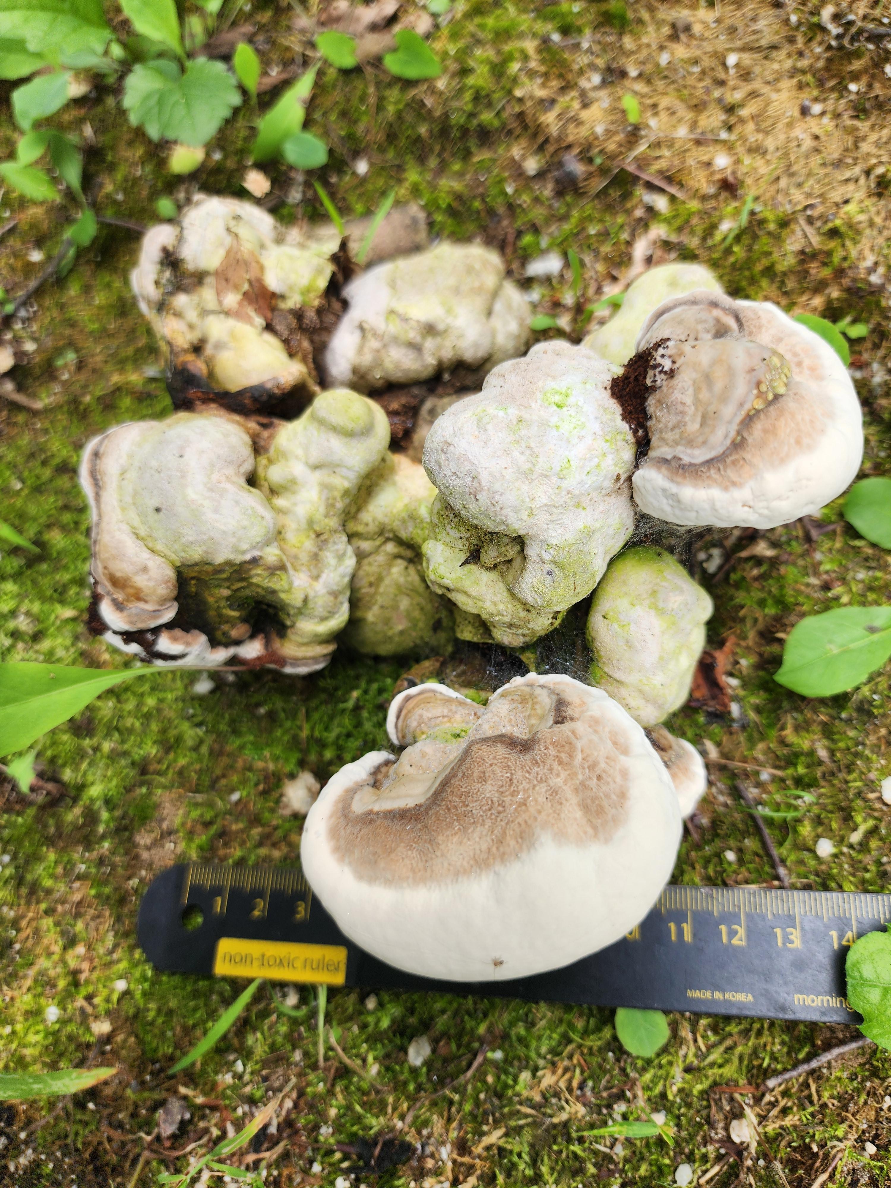 생태: 활엽수의 살아 있거나 죽은 나무 위에 발생;다년생 백색 부후균