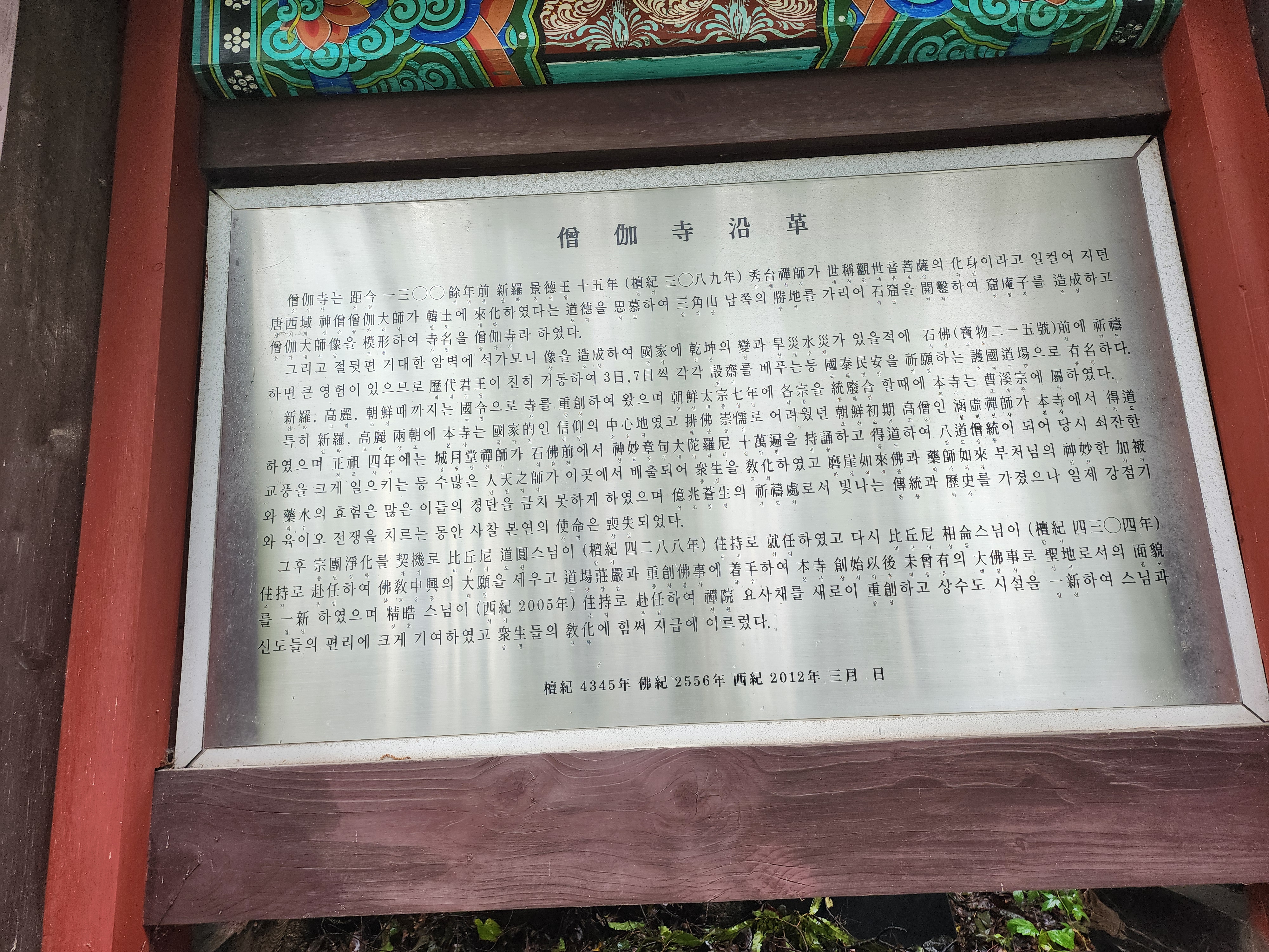 승가사 주련 (아래 주련의 푸른색 글자는 Gemini와 여러 번의 논의를 통하여 추측한 것으로 원출전을 통하여 확인된 것이 아니다.
