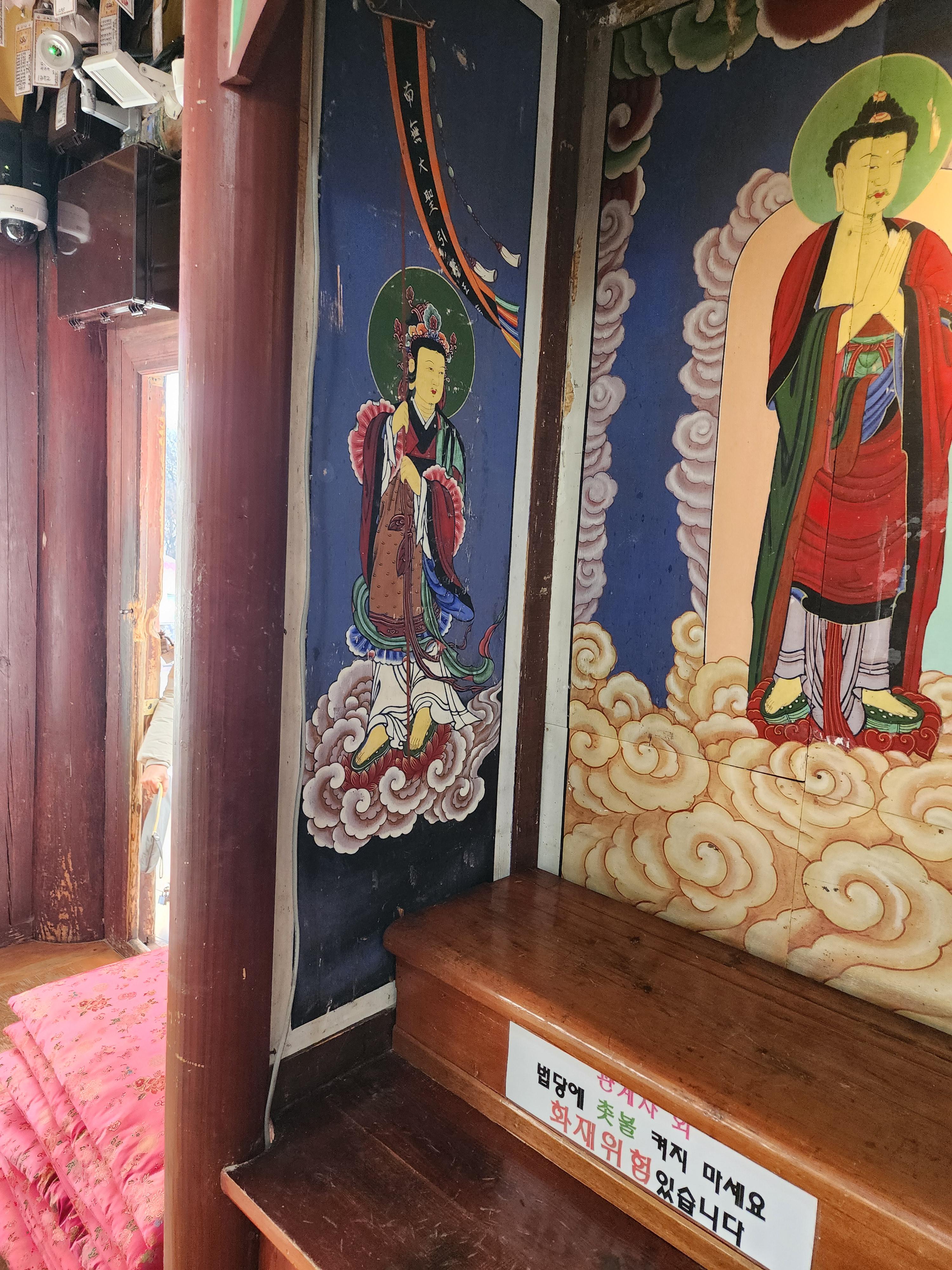 칠여래불 탱화 왼쪽에는 관음보살 탱화가 걸려 있다
