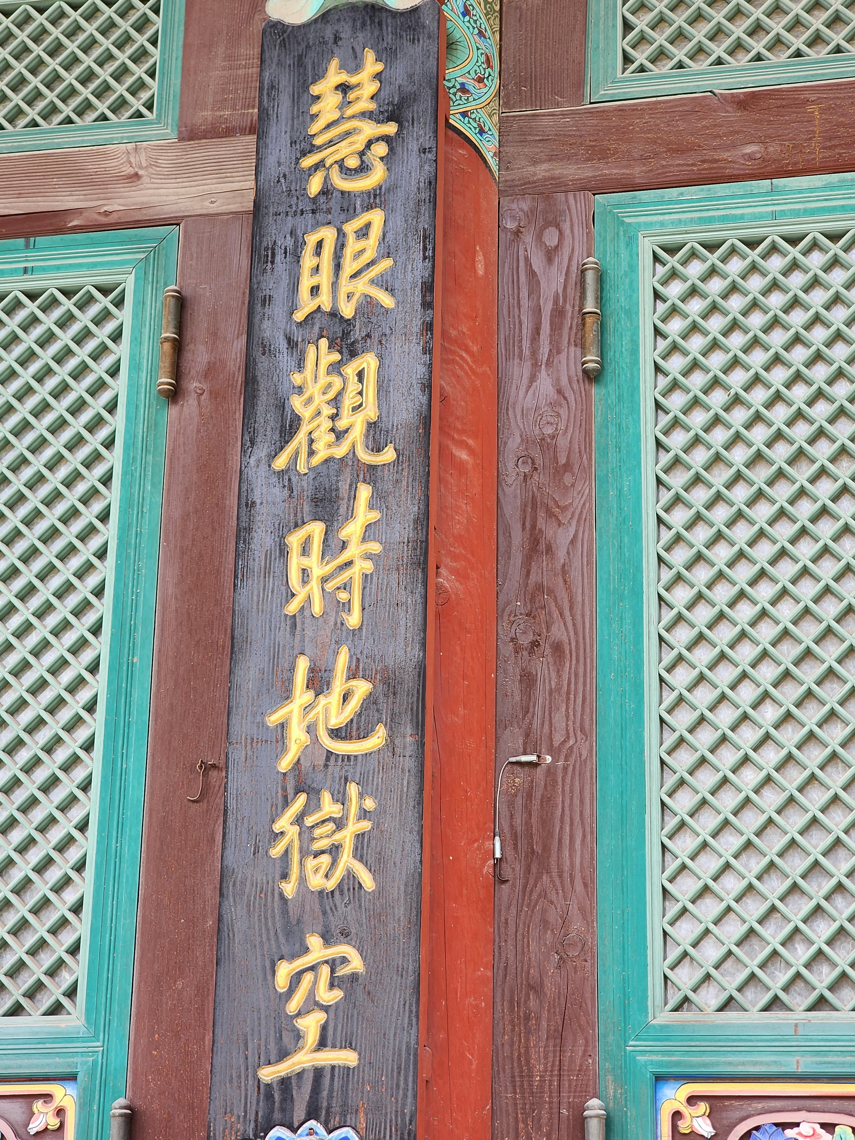 보이는 글자는 立春大吉 福慧具足 放行 把定이다